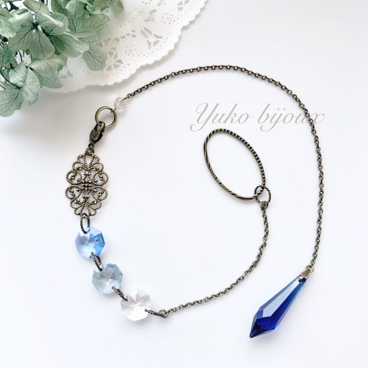 ※トップのスワロフスキーは接着剤で固定していないため、ペンジュラムとしてお使いの際は時々、留め金具を指で締めてください。
