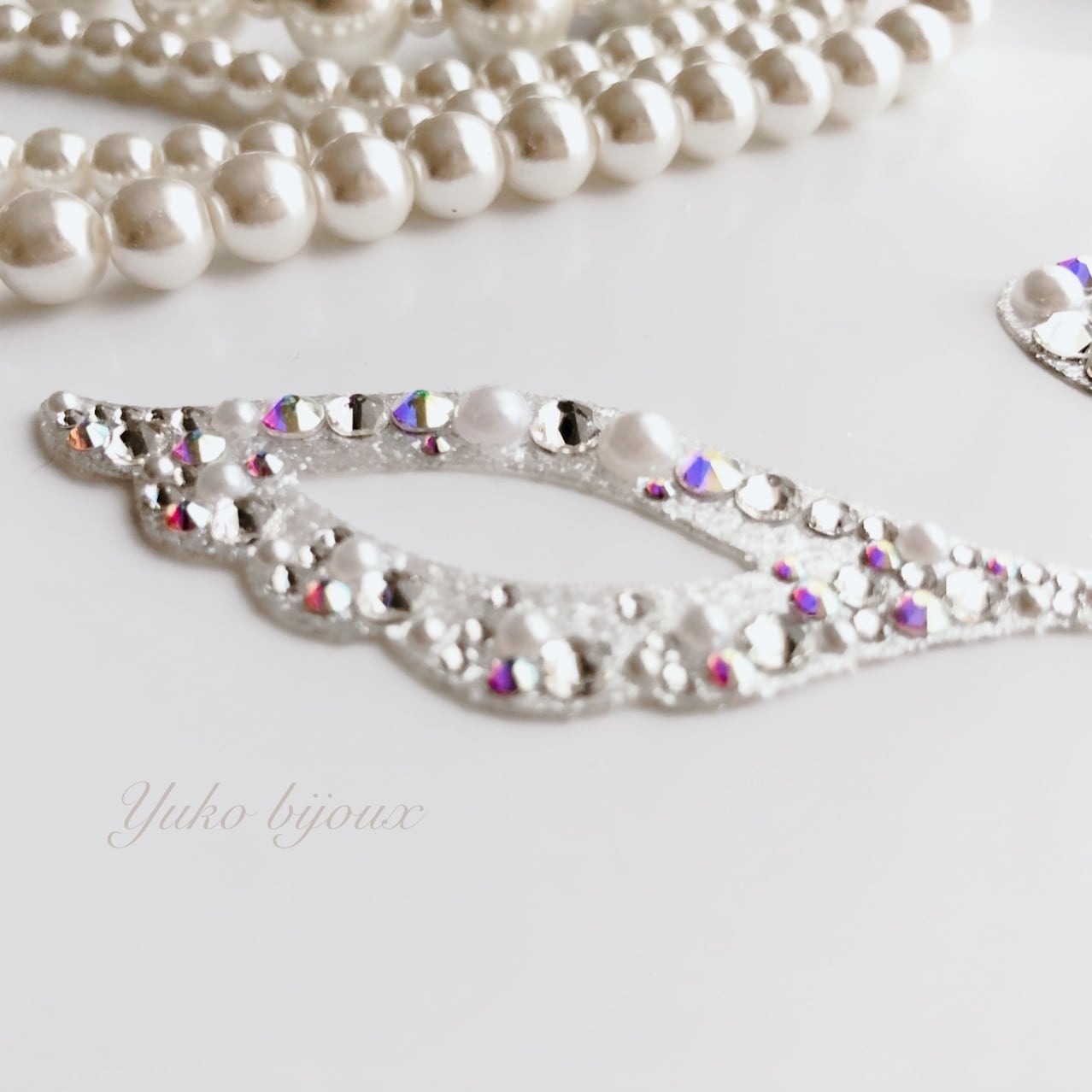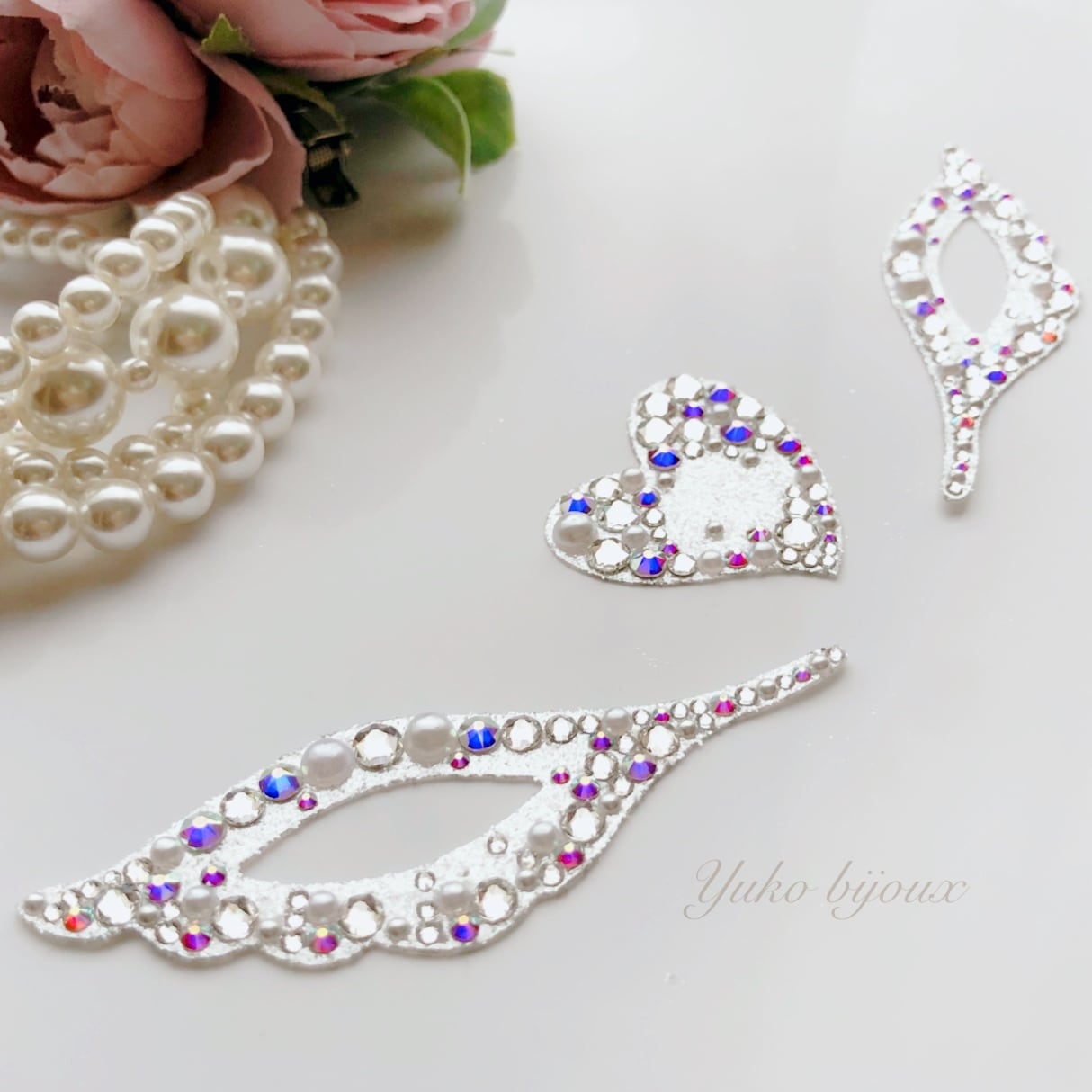素材:ユリシスシート、正規スワロフスキーラインストーン(クリスタル、クリスタルAB)、パールラインストーン