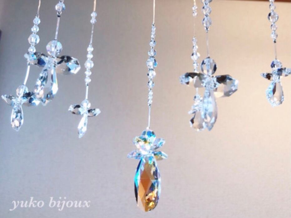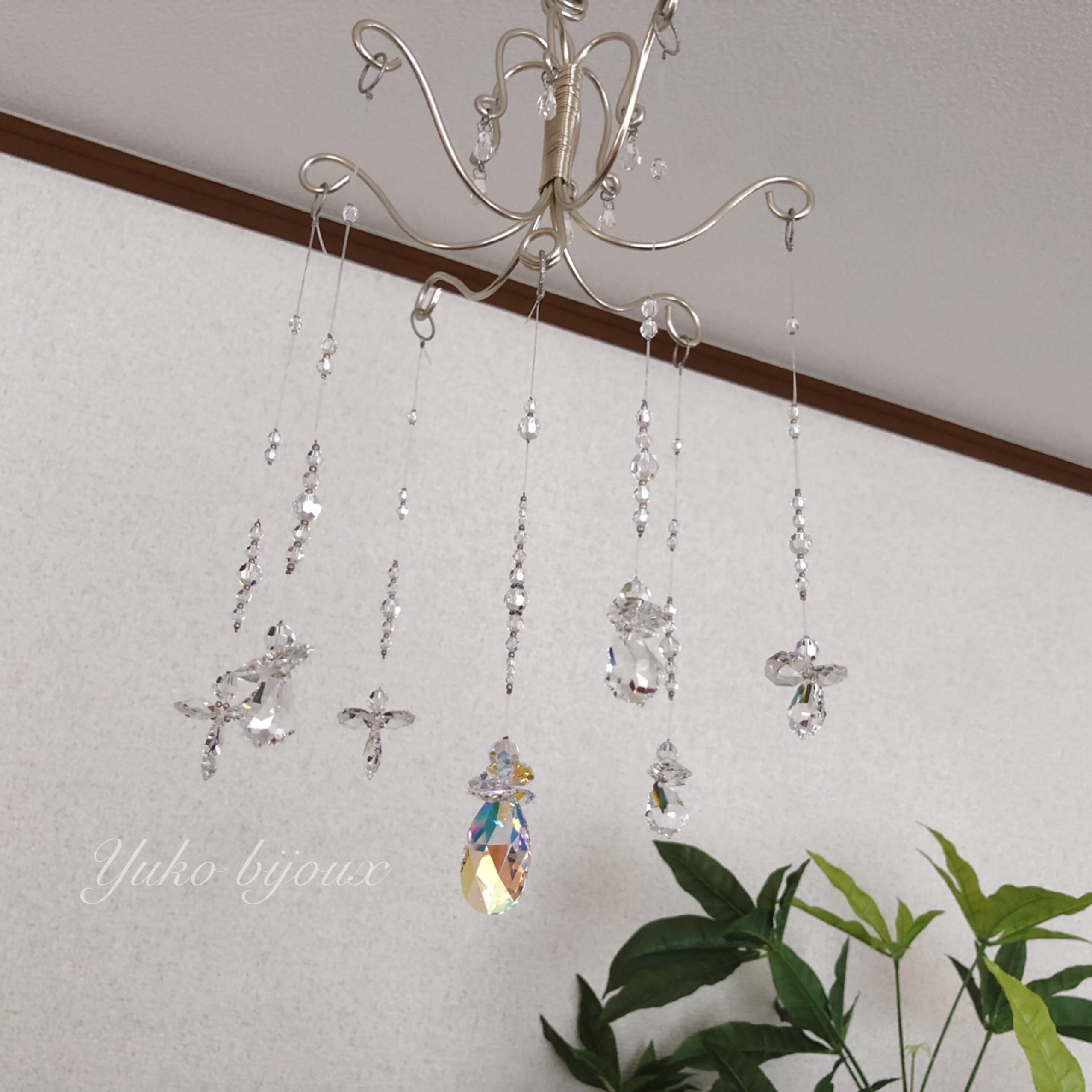 ※ワイヤー上部の6粒のスワロと中心の女神モチーフのサンキャッチャーは取り外し可(カニカン)。6本の天使モチーフのサンキャッチャーも取り外し可能です。